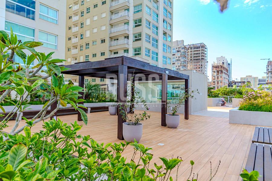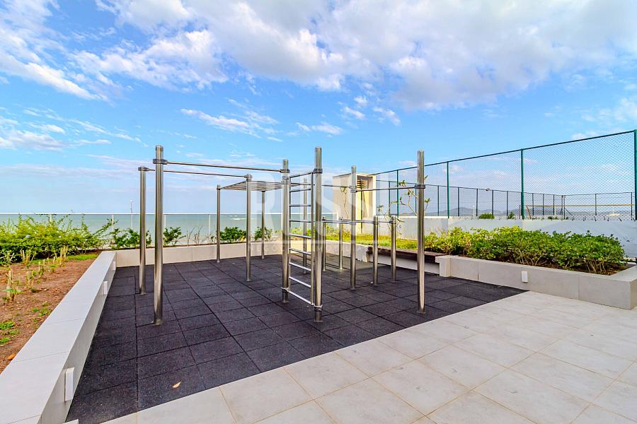O grande diferencial, e o ponto central do apartamento, é a sacada com churrasqueira a carvão, de onde se tem uma vista deslumbrante e privilegiada para o mar. É o espaço perfeito para relaxar, receber amigos e desfrutar do pôr do sol.